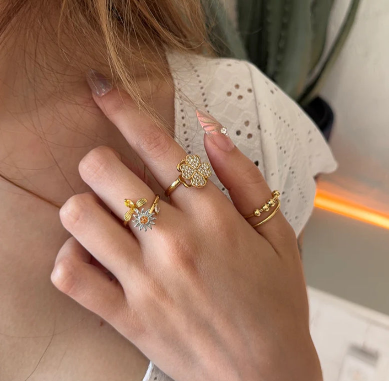 Avant : stress et petites habitudes nerveuses qui fatiguent vos mains… Après : un geste simple, un bijou discret, et votre pouce retrouve sa tranquillité. La bague anti-stress vous aide à canaliser vos tensions sans que personne ne le voie.